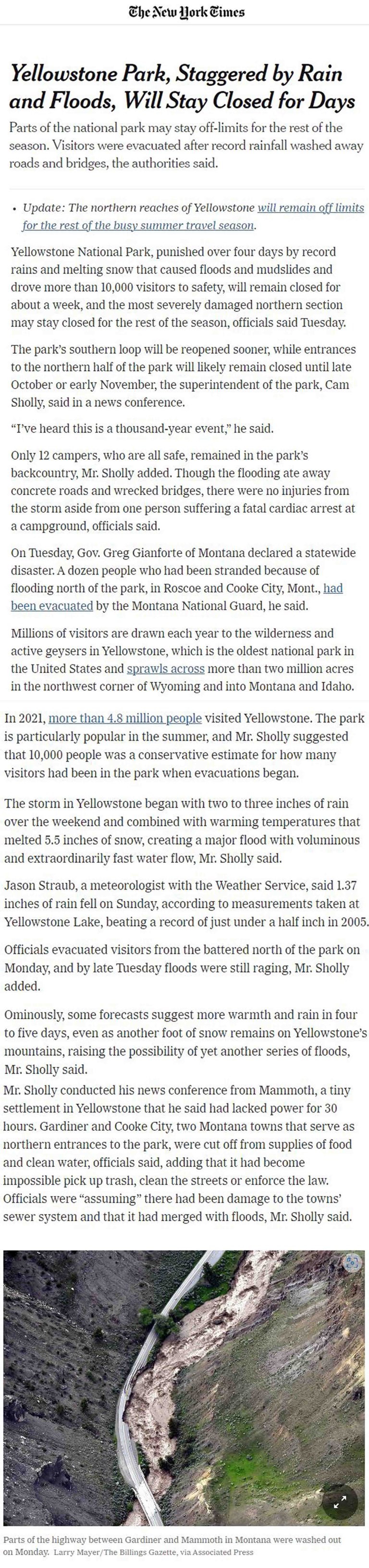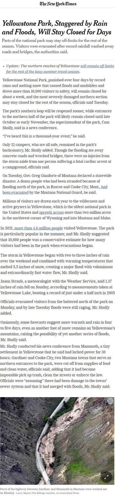 Yellowstone National Park and Gardiner Montana 2022 Flood News & Info