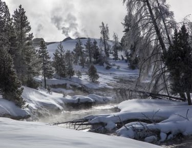 In winter, the park’s interior is accessible only by commercial over-snow transportation, and Yellowstone’s snowcoaches are essentially the ultimate 21st-century (heated) sleigh. These fascinating vehicles travel over groomed snow-covered roads, the same roads you’d drive yourself in the summer. The snowcoaches are driven by our seasoned guides, so every mile, regardless of destination, is a guided tour of Yellowstone’s extraordinary winter scenery.